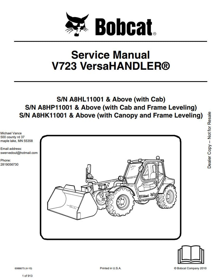 DOWNLOAD PDF FILE Bobcat 2010 V723 VERSAHANDLER Service Manual - PDF