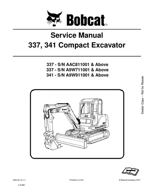 Comprehensive service manual for Bobcat 337 and 341 excavators in PDF format. This technical documentation covers maintenance procedures, troubleshooting, component specifications, and repair guidelines essential for equipment operators and technicians. Access detailed schematics, torque specifications, and step-by-step instructions to keep your machinery operating at peak performance. Ideal for workshop reference and preventive maintenance planning.
