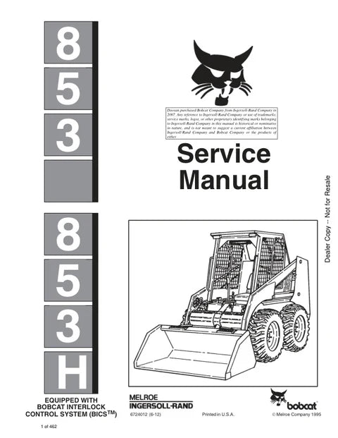 DOWNLOAD PDF FILE Bobcat 853, 853H LOADER Service Manual - PDF