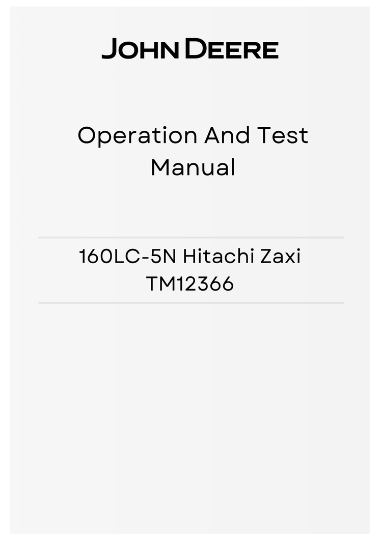 Master the operation and testing procedures of your John Deere 160LC-5N Hitachi ZAXI with this comprehensive manual. This detailed guide covers essential operating instructions, maintenance protocols, and diagnostic testing procedures to ensure optimal equipment performance. Ideal for operators, technicians, and service professionals seeking reliable reference documentation. Access critical information on system functions, troubleshooting, and proper maintenance schedules. Perfect for training, field reference, or technical support. Available in convenient PDF format for easy access and distribution.