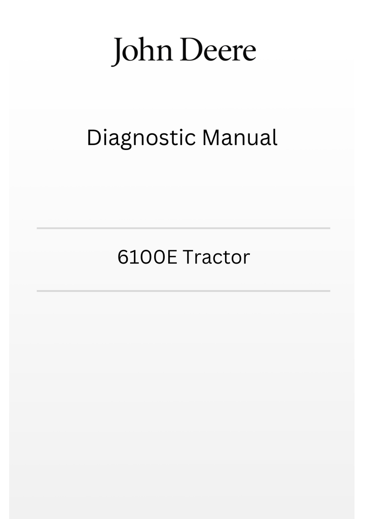 Comprehensive diagnostic manual for the John Deere 6100E tractor, document reference TM800319. This technical resource provides detailed troubleshooting procedures, diagnostic codes, system schematics, and repair specifications essential for service technicians and equipment operators. Access complete maintenance protocols, electrical diagrams, and component testing methods to efficiently identify and resolve mechanical issues. Ideal for authorized dealers, independent repair shops, and experienced operators requiring professional-grade technical documentation. Instant PDF download ensures immediate availability for field service and workshop reference.