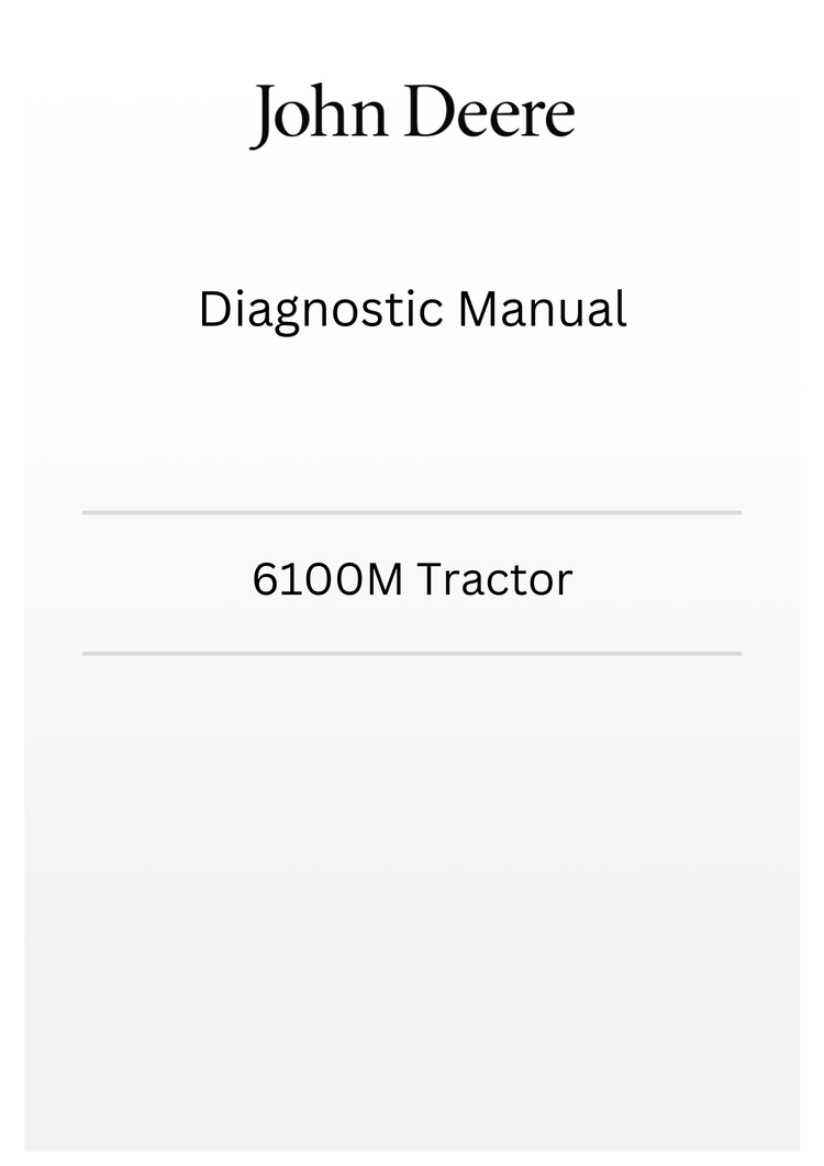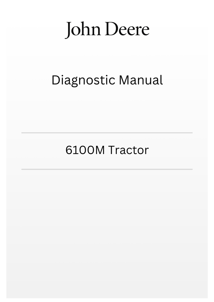 The John Deere 6100M Tractor Diagnostic Manual (TM411919) is an essential technical resource for service technicians and equipment operators. This comprehensive PDF guide provides detailed diagnostic procedures, troubleshooting protocols, and system specifications for the 6100M model. Access critical information on engine performance, hydraulic systems, electrical components, and transmission diagnostics. Ideal for maintenance planning, repair operations, and technical support. Ensure optimal tractor performance with manufacturer-approved diagnostic guidance.