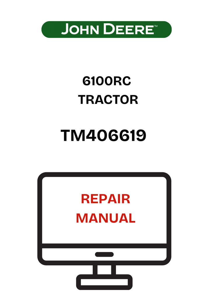 COMPLETE REPAIR MANUAL FOR THE JOHN DEERE 6100RC TRACTOR (TM406619) DELIVERED IN PDF FORMAT. CONTAINS DETAILED TECHNICAL SPECIFICATIONS, DIAGNOSTIC PROCEDURES, AND STEP-BY-STEP REPAIR INSTRUCTIONS ESSENTIAL FOR MAINTENANCE PROFESSIONALS. INCLUDES COMPREHENSIVE WIRING DIAGRAMS, HYDRAULIC SCHEMATICS, AND TORQUE SPECIFICATIONS FOR PRECISE SERVICING OF ALL TRACTOR COMPONENTS AND SYSTEMS.