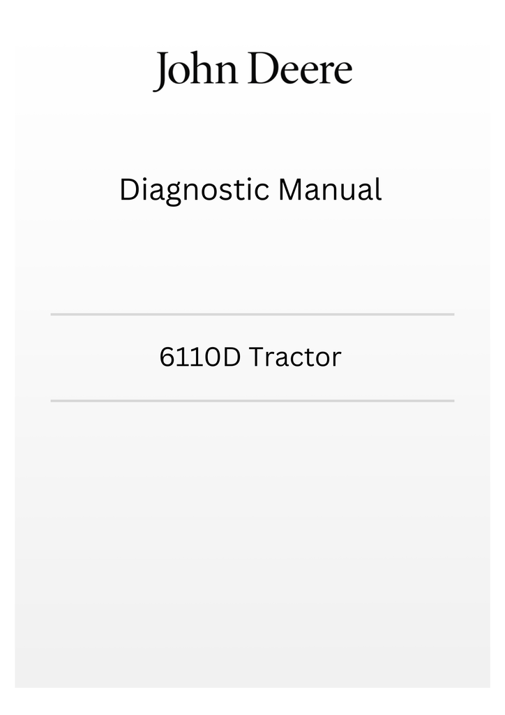 Comprehensive diagnostic manual for the John Deere 6110D tractor, document reference TM605119. This technical resource provides detailed troubleshooting procedures, system diagnostics, and repair guidance for service technicians and operators. Covers engine performance, hydraulic systems, electrical components, and transmission diagnostics. Essential reference for identifying and resolving mechanical issues efficiently. Instant PDF download ensures immediate access to critical service information. Ideal for authorized dealers, independent repair shops, and experienced operators requiring professional-grade diagnostic support.