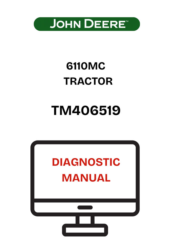 COMPREHENSIVE DIAGNOSTIC MANUAL FOR THE JOHN DEERE 6110MC TRACTOR (TM406519) DELIVERED IN CONVENIENT PDF FORMAT. CONTAINS DETAILED TROUBLESHOOTING PROCEDURES, DIAGNOSTIC CODES, ELECTRICAL SCHEMATICS, AND TESTING PROTOCOLS ESSENTIAL FOR ACCURATE MAINTENANCE AND REPAIR. DESIGNED FOR TECHNICIANS AND OWNERS SEEKING FACTORY-LEVEL DIAGNOSTIC CAPABILITIES FOR OPTIMAL TRACTOR PERFORMANCE AND LONGEVITY.