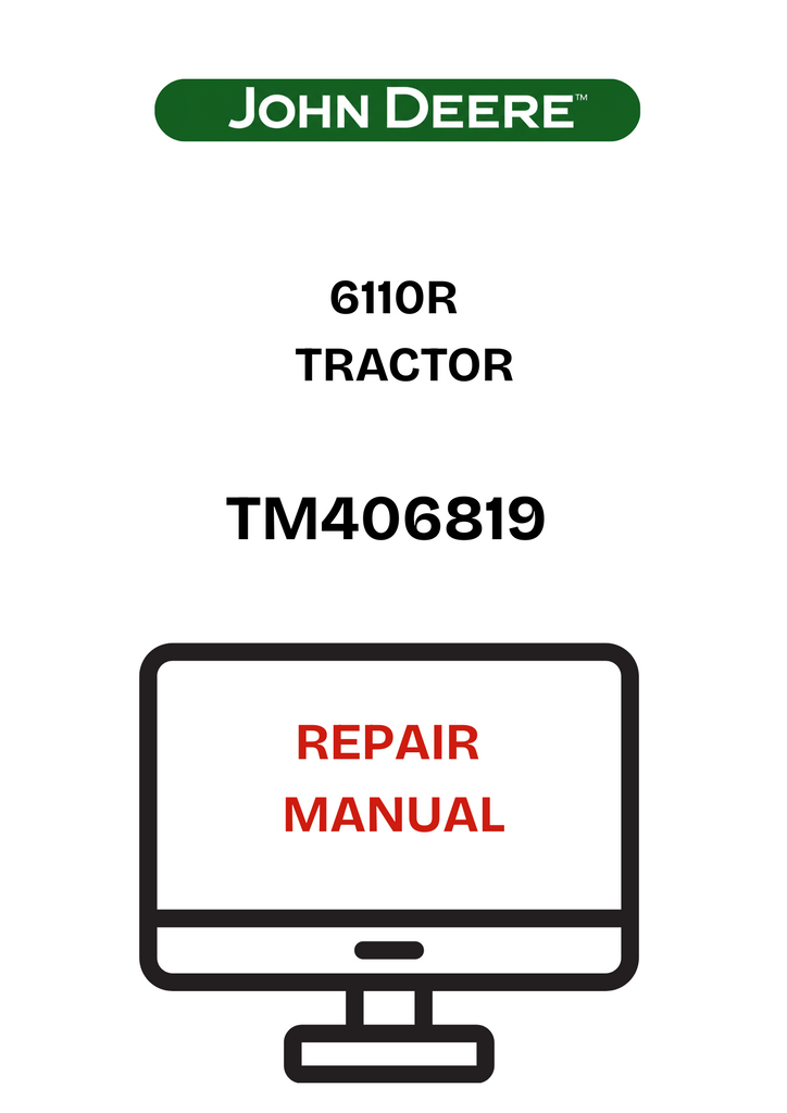THIS COMPREHENSIVE REPAIR MANUAL FOR THE JOHN DEERE 6110R TRACTOR (TM406819) PROVIDES DETAILED TECHNICAL SPECIFICATIONS, DIAGNOSTIC PROCEDURES, AND STEP-BY-STEP REPAIR INSTRUCTIONS. DELIVERED IN CONVENIENT PDF FORMAT, THIS ESSENTIAL RESOURCE ENABLES TECHNICIANS TO PERFORM MAINTENANCE AND REPAIRS WITH PRECISION. CONTAINS COMPLETE ELECTRICAL DIAGRAMS, HYDRAULIC SCHEMATICS, AND TORQUE SPECIFICATIONS REQUIRED FOR PROFESSIONAL SERVICING OF YOUR 6110R TRACTOR.