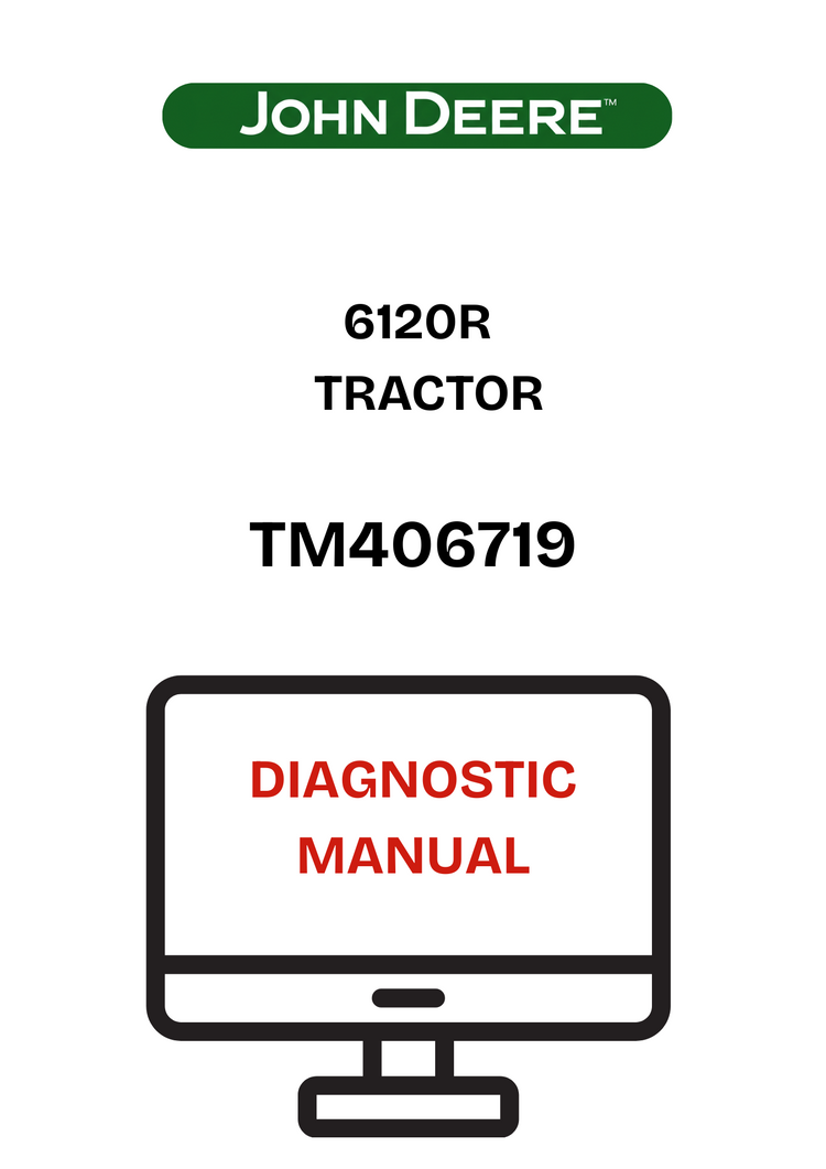 COMPREHENSIVE DIAGNOSTIC MANUAL FOR THE JOHN DEERE 6120R TRACTOR (TM406719) DELIVERED IN CONVENIENT PDF FORMAT. CONTAINS DETAILED TROUBLESHOOTING PROCEDURES, DIAGNOSTIC TROUBLE CODES, ELECTRICAL SCHEMATICS, AND COMPONENT TESTING PROTOCOLS ESSENTIAL FOR ACCURATE MAINTENANCE AND REPAIRS. ENABLES TECHNICIANS TO EFFICIENTLY IDENTIFY AND RESOLVE MECHANICAL, HYDRAULIC, AND ELECTRONIC SYSTEM ISSUES.
