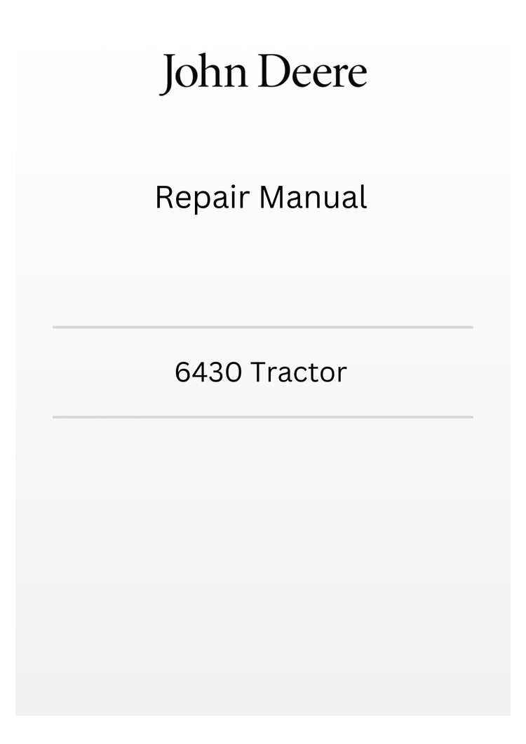 DOWNLOAD COMPLETE REPAIR MANUAL FOR JOHN DEERE 6430 TRACTOR | PUBLICATION NUMBER - TM8008