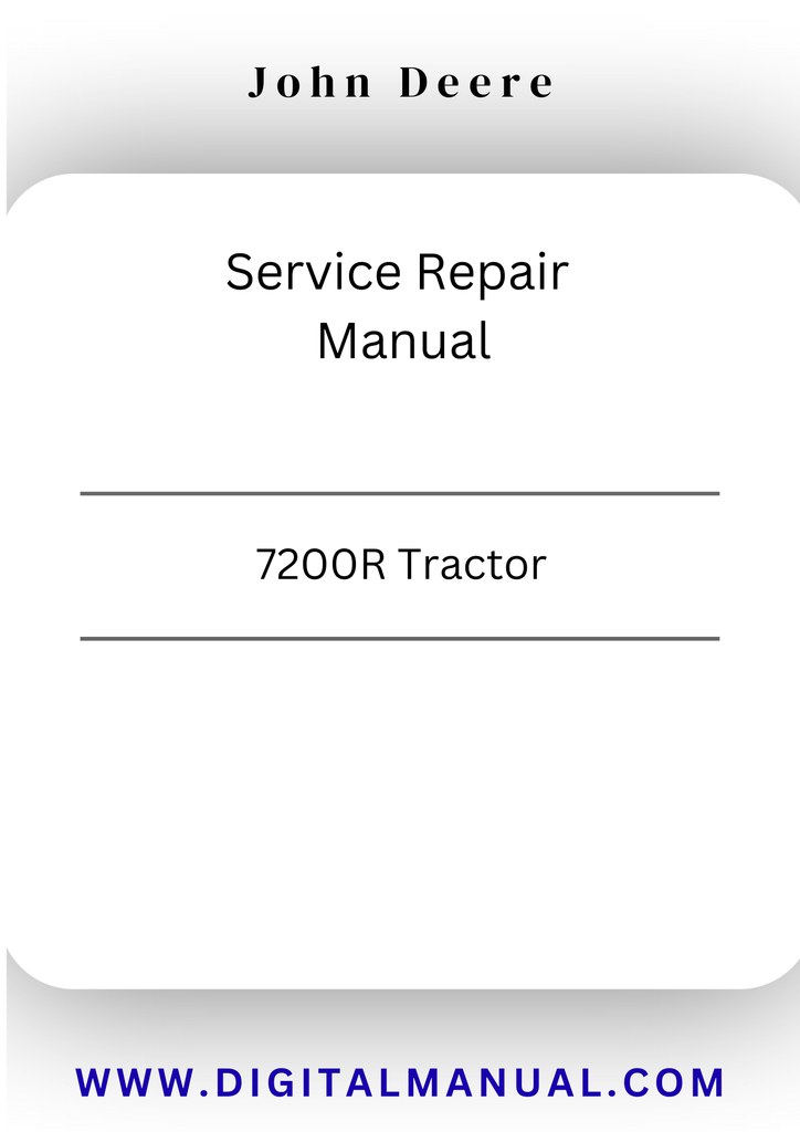The John Deere 7200R Tractor Service Repair Manual (TM110119) is a comprehensive technical resource designed for mechanics, technicians, and equipment operators. This PDF manual provides detailed diagnostic procedures, maintenance schedules, and step-by-step repair instructions for the 7200R model. Covering engine systems, hydraulics, transmission, electrical components, and more, this documentation ensures proper servicing and troubleshooting. Essential for maintaining peak performance and extending equipment lifespan, this manual delivers the factory-level expertise needed for professional-grade repairs and routine maintenance.