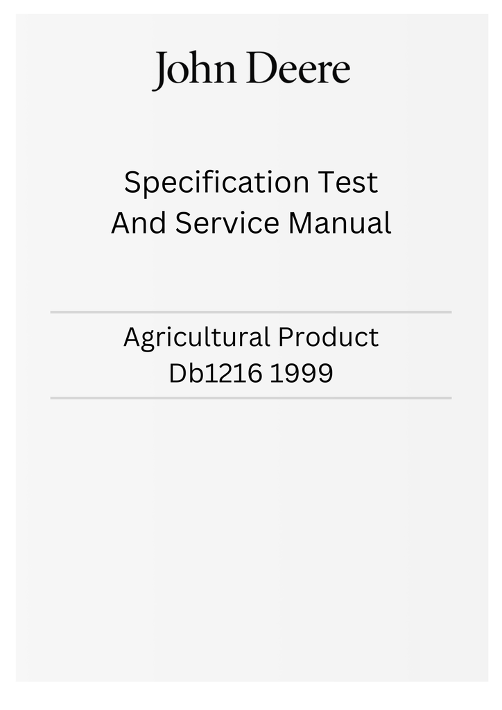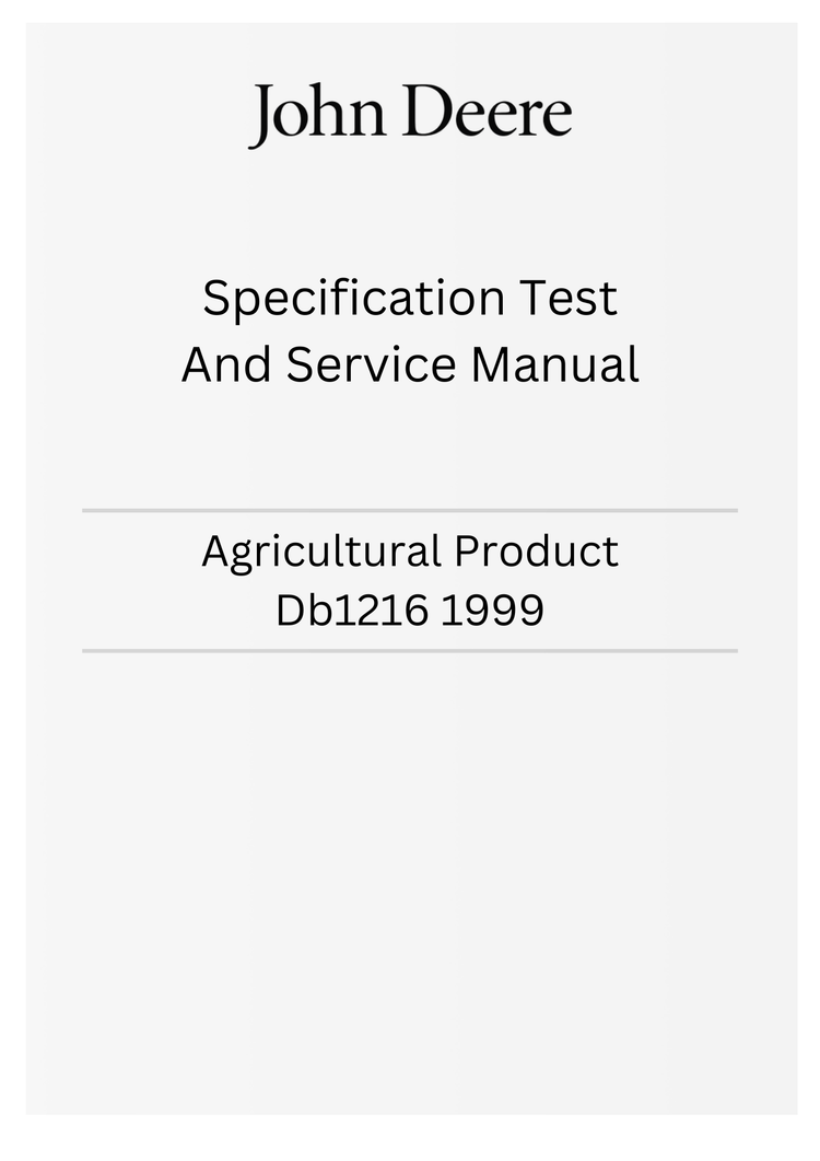 This comprehensive service manual for the John Deere DB1216 agricultural product delivers detailed specifications, testing procedures, and maintenance protocols essential for operators and technicians. The 1999 edition provides authoritative guidance on equipment operation, troubleshooting, and routine servicing to maximize performance and longevity. Delivered as an instantly accessible PDF file, this technical resource eliminates downtime by offering quick reference solutions for common issues and preventive maintenance schedules. Ideal for farm managers, mechanics, and equipment owners seeking reliable documentation to keep machinery running at peak efficiency.
