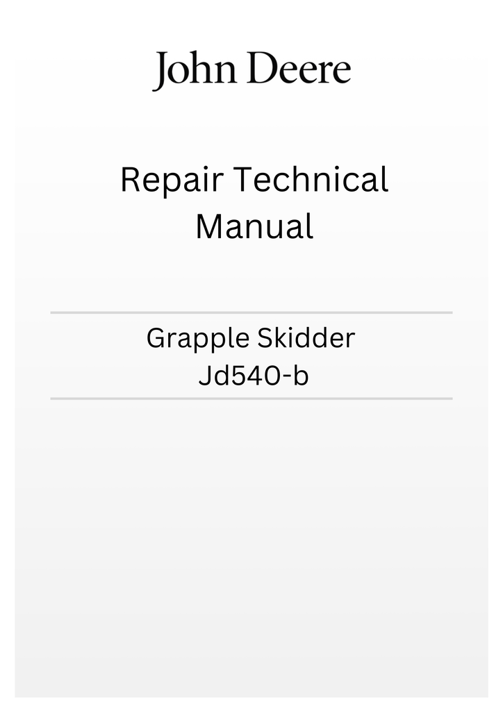 This comprehensive technical repair manual for the John Deere Grapple Skidder JD540-B provides detailed service and maintenance procedures essential for equipment operators and technicians. Document TM1139 covers complete diagnostic protocols, component specifications, troubleshooting guides, and step-by-step repair instructions. Ideal for workshop reference, this PDF manual ensures proper maintenance and extends equipment longevity. Access critical technical data instantly without waiting for physical documentation delivery.