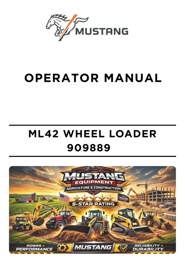 4. Get the MUSTANG ML42 Wheel Loader Operator Manual (909889) in PDF format. Unlock the full potential of your loader with this essential operator's guide!