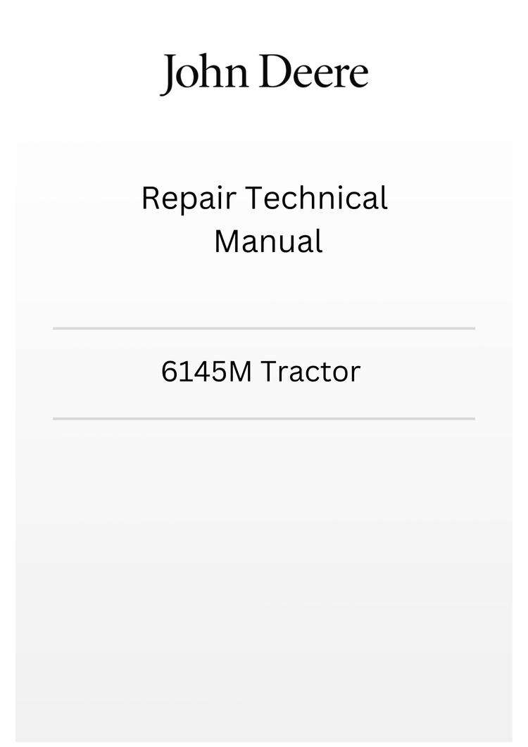 The TM410719 is the official repair technical manual for John Deere 6145M tractors. This comprehensive guide delivers detailed diagnostic procedures, component specifications, and step-by-step repair instructions for all major systems including engine, transmission, hydraulics, and electrical components. Designed for technicians and experienced operators, it provides the factory-level information needed for accurate troubleshooting and maintenance. Essential reference material for anyone performing repairs or servicing this model.