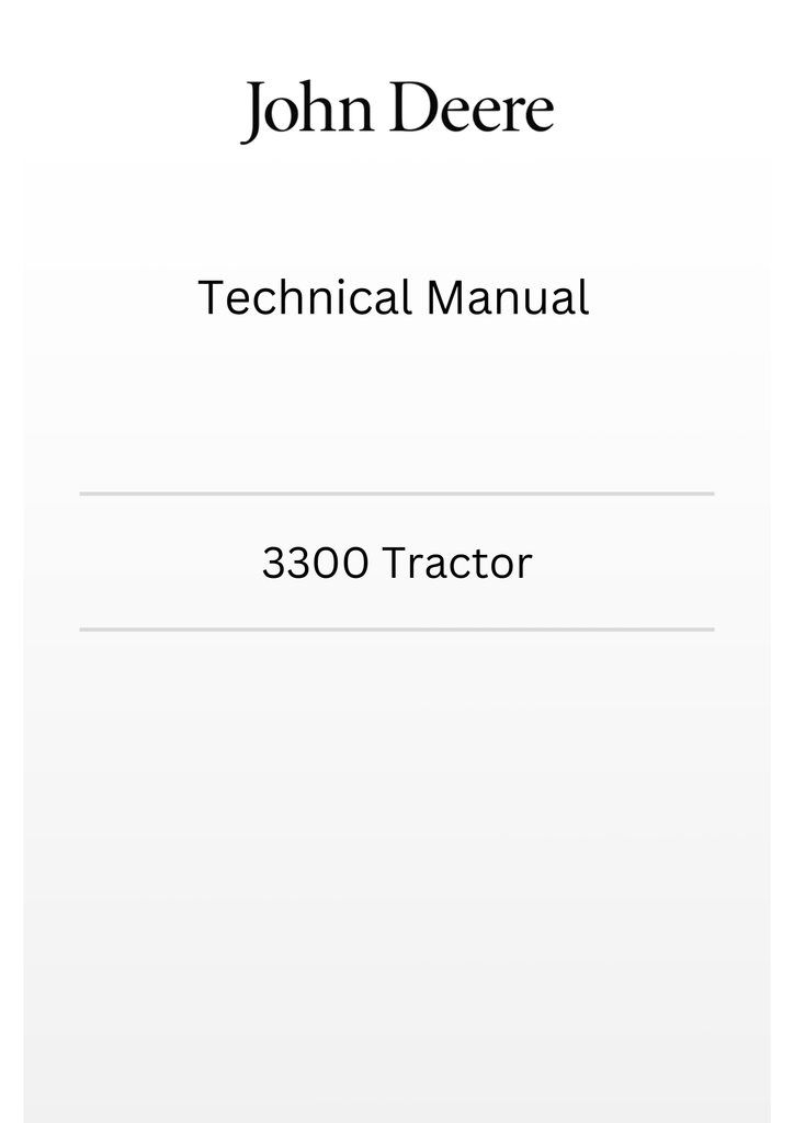 The TM4525 is the comprehensive technical manual for John Deere 3300 tractors, designed for operators, technicians, and maintenance professionals. This detailed reference covers engine specifications, hydraulic systems, electrical schematics, transmission operation, and routine service procedures. Featuring clear diagrams, torque specifications, and troubleshooting guides, it enables efficient repairs and preventive maintenance. Essential for anyone responsible for the operation, upkeep, or restoration of this classic agricultural workhorse. Ideal for farm operations, equipment dealers, and restoration enthusiasts seeking authoritative technical documentation.