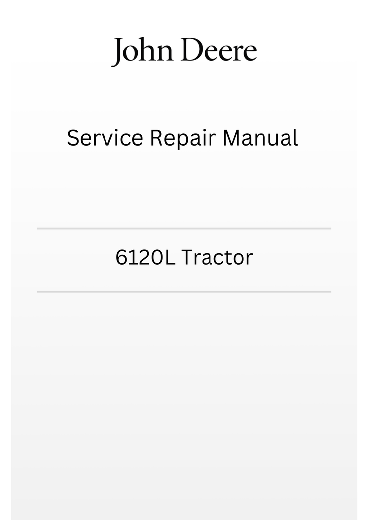 The TM4647 is the comprehensive service and repair manual for John Deere 6120L tractors, designed for technicians, operators, and maintenance professionals. This detailed guide covers complete diagnostic procedures, troubleshooting steps, and repair specifications for all major systems including engine, transmission, hydraulics, electrical, and PTO components. Featuring factory-approved service intervals, torque specifications, and component replacement procedures, this manual ensures proper maintenance and efficient repairs. Whether performing routine servicing or addressing complex mechanical issues, this essential reference delivers the technical expertise needed to keep your 6120L operating at peak performance.