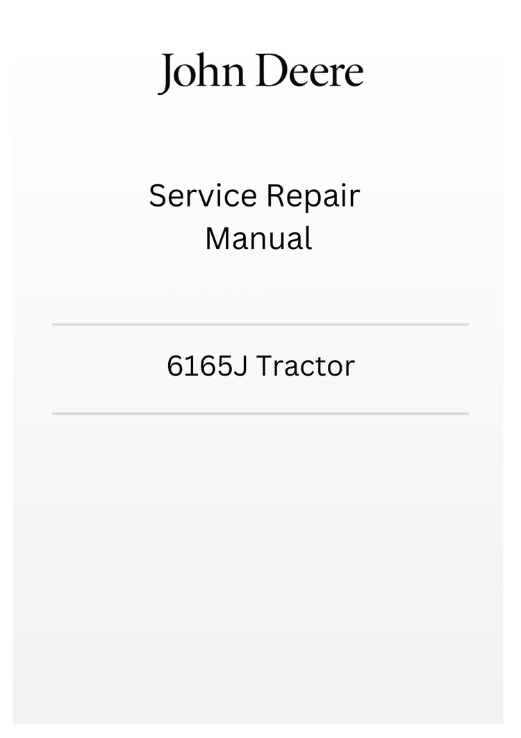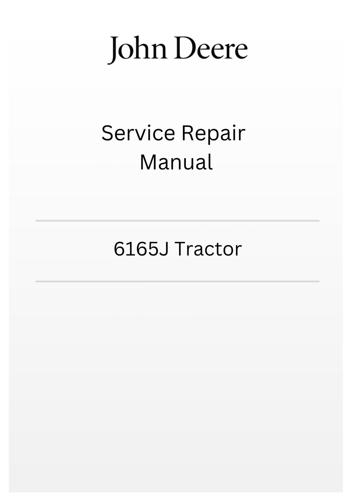This comprehensive service repair manual for the John Deere 6165J tractor provides detailed technical guidance for maintenance, troubleshooting, and repair procedures. Designed for operators, technicians, and service professionals, this manual includes step-by-step instructions, diagnostic charts, and specifications essential for keeping your equipment running at peak performance. Whether performing routine maintenance or addressing complex mechanical issues, this resource delivers the expertise needed to maximize uptime and extend equipment life. Perfect for workshops, farms, and equipment rental operations seeking reliable technical documentation.