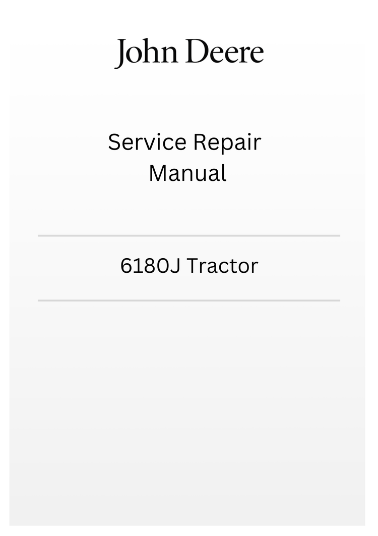 The TM801519 is the official John Deere service and repair manual for the 6180J tractor model. This comprehensive technical guide provides detailed procedures for maintenance, troubleshooting, and repair operations. Designed for technicians and operators, it includes step-by-step instructions, specifications, and diagrams essential for keeping your equipment in peak operating condition. Whether performing routine service or addressing complex mechanical issues, this manual delivers the authoritative information needed for professional-grade maintenance and repairs.