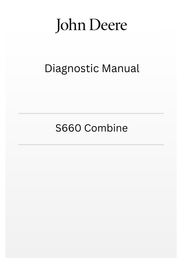 The John Deere S660 Combine Diagnostic Manual (TM805419) is an essential technical resource for service technicians and equipment operators. This comprehensive guide provides detailed diagnostic procedures, troubleshooting protocols, and system specifications for the S660 combine harvester. Access critical information on engine performance, hydraulic systems, electrical components, and operational parameters to quickly identify and resolve equipment issues. Ideal for authorized dealers, service centers, and experienced operators requiring factory-level diagnostic expertise.